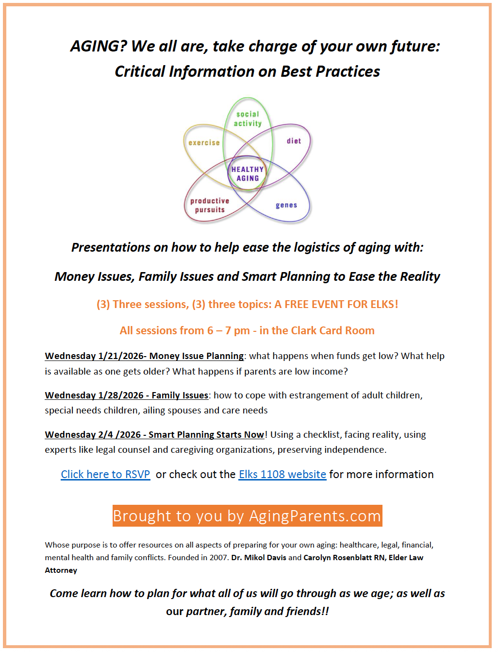 Three sessions, three topics: A FREE EVENT FOR ELKS!