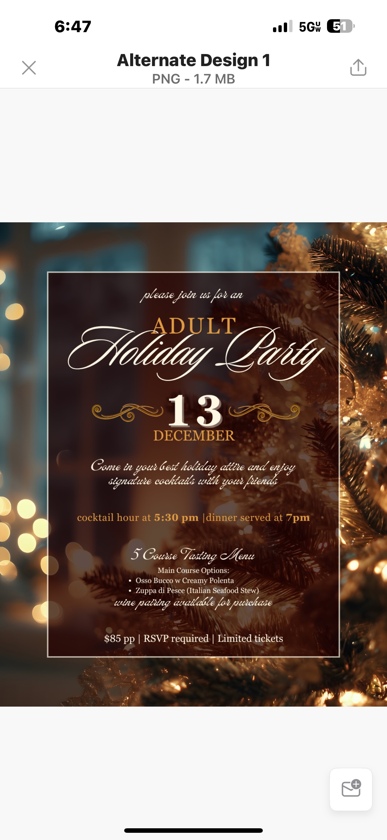 cocktail hour at 5:30 pm | dinner served at 7pm