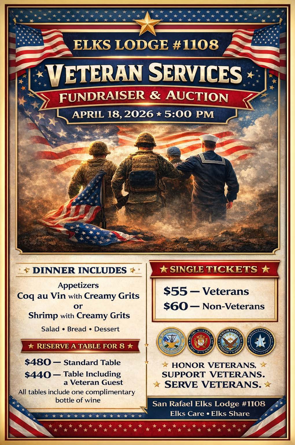 Housing for these Veterans is provided through the Marin County Veterans Service Office and Section 8 Vouchers - but they receive little help to furnish their new housing. This is where Elks step up! The Lodge provides furniture, household and kitchen accessories and equipment - and a warm welcome to their future!